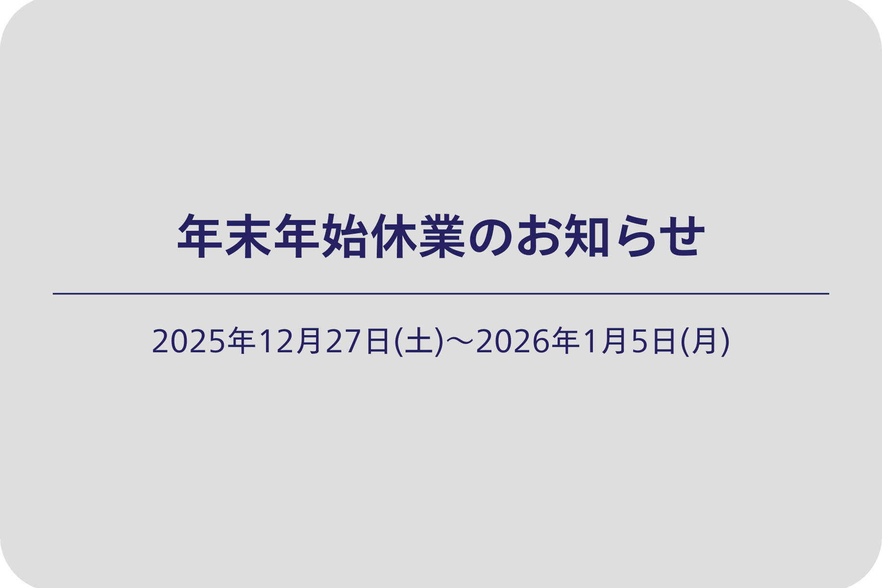 年末年始休業につきまして、下記の通りご案内申し上げます。